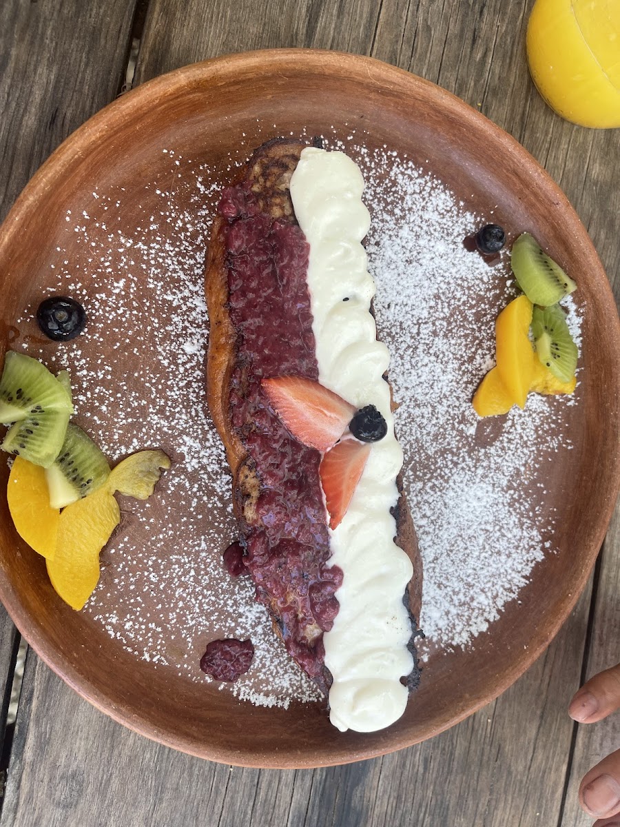 Great spot for breakfast, brunch or lunch. We went three times during our week in Santa Cruz, every dish we tried was great and very relaxing vibe. Recommend huevos rancheros, chilaquiles, pan Frances and agua de fruta temporada (Jamaica = hibiscus.. yum)